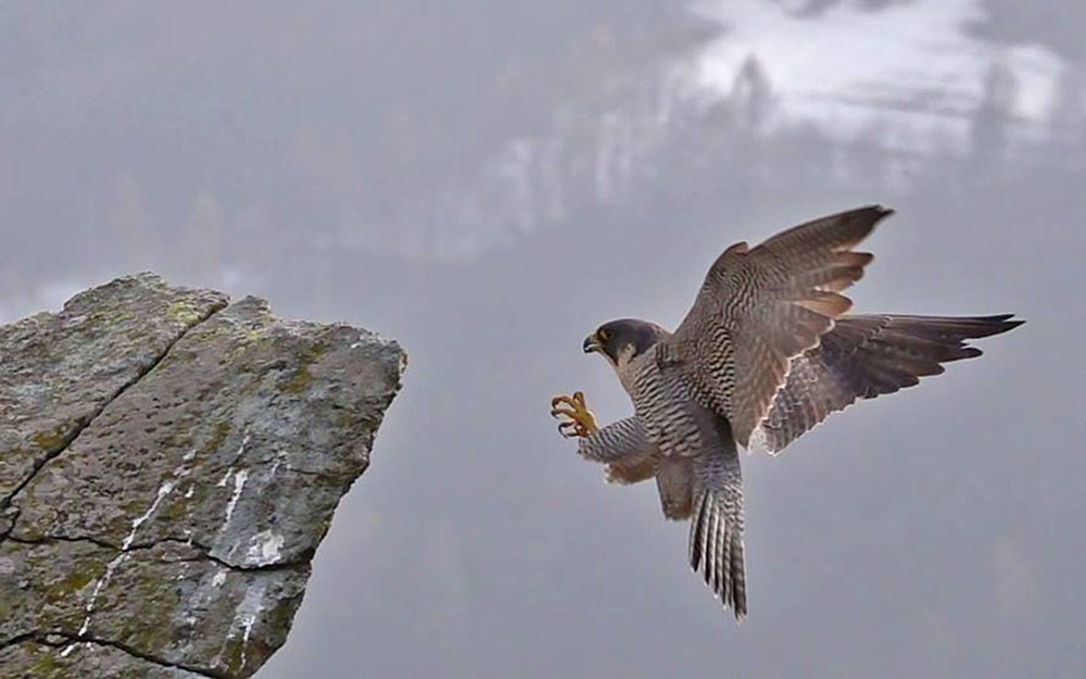Il falco pellegrino non vola veloce in orizzontale, ma è incredibile in picchiata: per questo predilige la caccia scendendo verso il basso da grandi altezze.