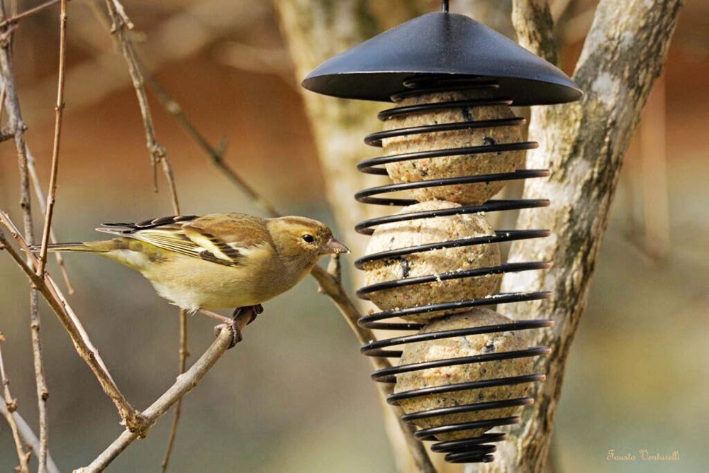 Se volete appenderle per osservare meglio gli uccelli (oppure perché nelle vicinanze ci sono dei felini...) vi sconsigliamo di usare le reti in plastica che abitualmente contengono aglio, limoni o arance: gli uccelli potrebbero restare impigliati con le zampe e non riuscire a liberarsi. Meglio acquistare una piccola mangiatoia oppure costruirla: sul web esistono moltissimi esempi e tutorial, anche realizzati in materiale riciclato.