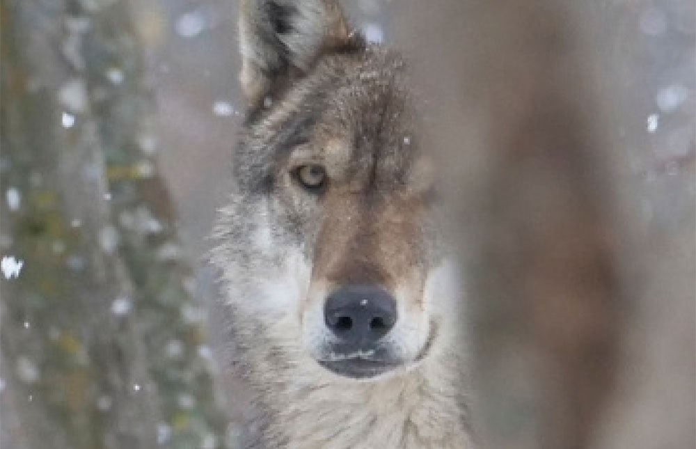 Sorpreso nel bosco. Lupo in Valle di Susa (foto di Dante Alpe).