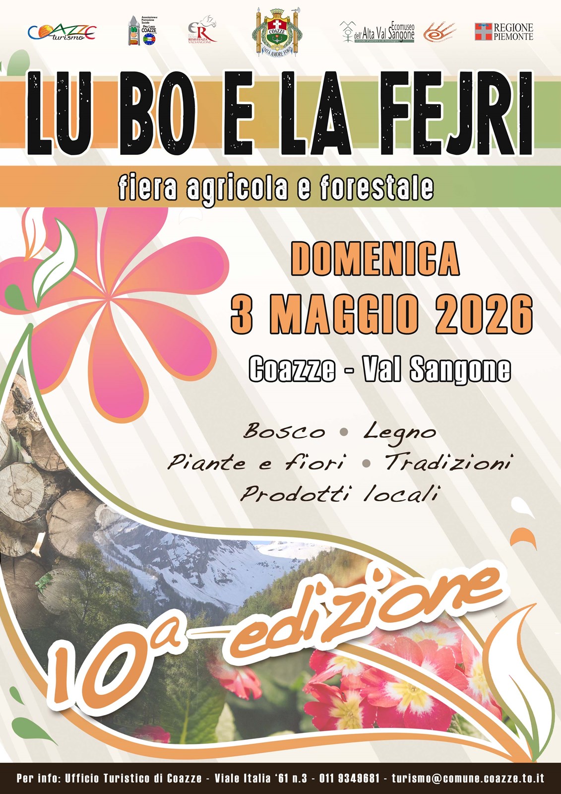 La fiera agricola e forestale “Le bo e la Fejri” torna domenica 3 maggio per la sua nona edizione. Le vie e le piazze di Coazze saranno piene di banchetti e iniziative dedicate al tema della filiera del legno, che in Valsangone occupa diverse persone.