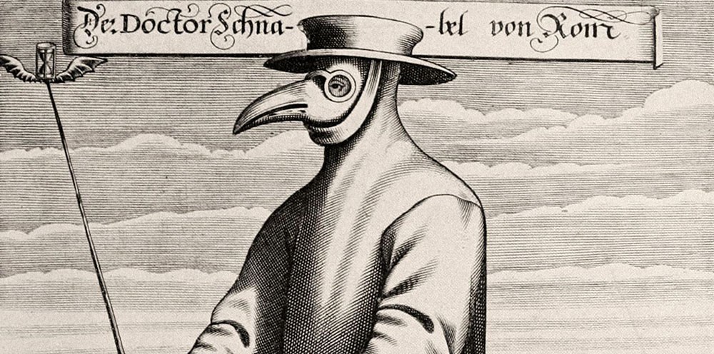 I medici si abbigliavano anche allora per proteggersi e indossavano una curiosa maschera dal lungo becco, dove mettevano profumi e la “triaca”, un misto di decine di aromi ed erbe, convinti che essi assorbissero i miasmi della peste.