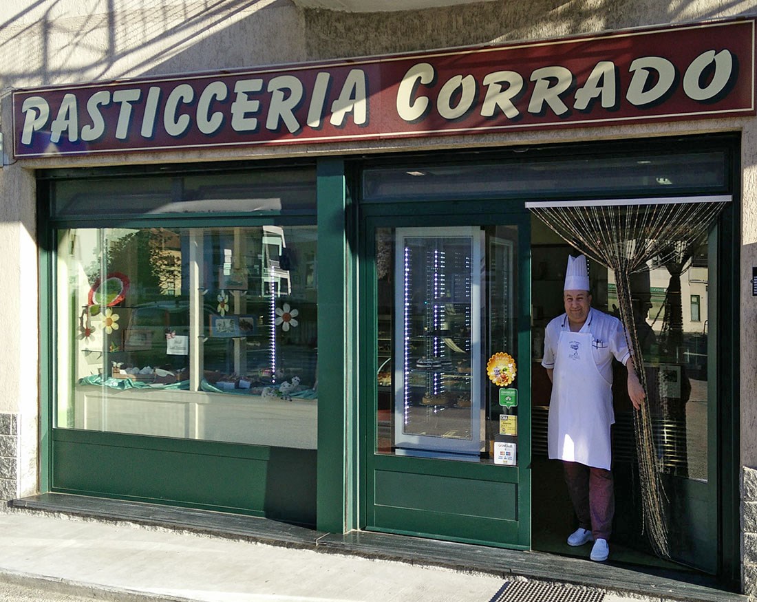 Simpatico e cordiale, Corrado è sempre stato un grande appassionato di arte dolciaria ed ha lavorato nel settore fin da ragazzo, prima alla pasticceria Dalmasso e poi in giro per il Piemonte (Orbassano, Caluso, Ivrea, Giaveno…) a sperimentare ed a apprendere l’arte dei dolci e dei gelati. “La mia è una vera “vocazione” - ci dice - tanto che spesso non mi accorgo delle ore che passano mentre sono al lavoro. Come tutti gli artigiani inizio la mattina presto e la sera mi fermo a preparare i dolci da infornare o le basi per il gelato da lavorare il giorno dopo ma tutto questo non mi pesa, e la mia più grande soddisfazione è quella di avere una clientela affezionata e soddisfatta”.