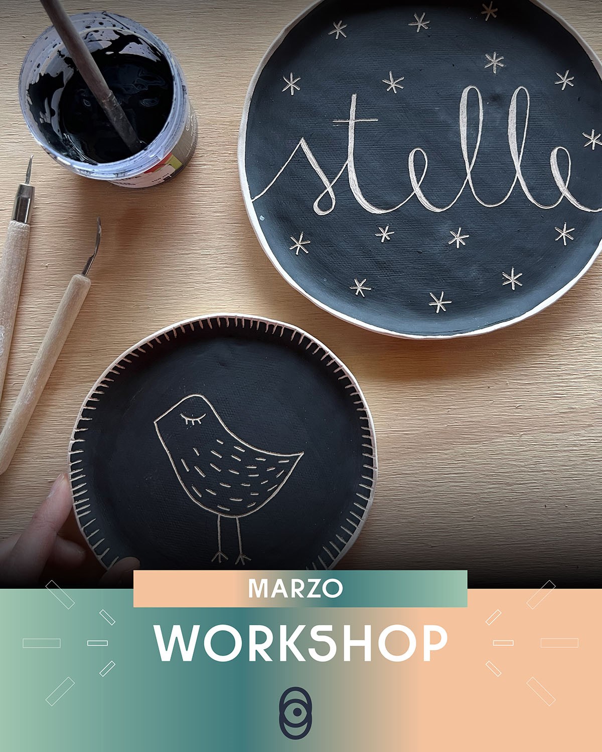 Sabato 21 mattina sarà possibile partecipare al workshop di “Sgraffito su tazza o piatto” di Elisa Sasso: attraverso incisioni, contrasti e grafismi i partecipanti personalizzano un oggetto.