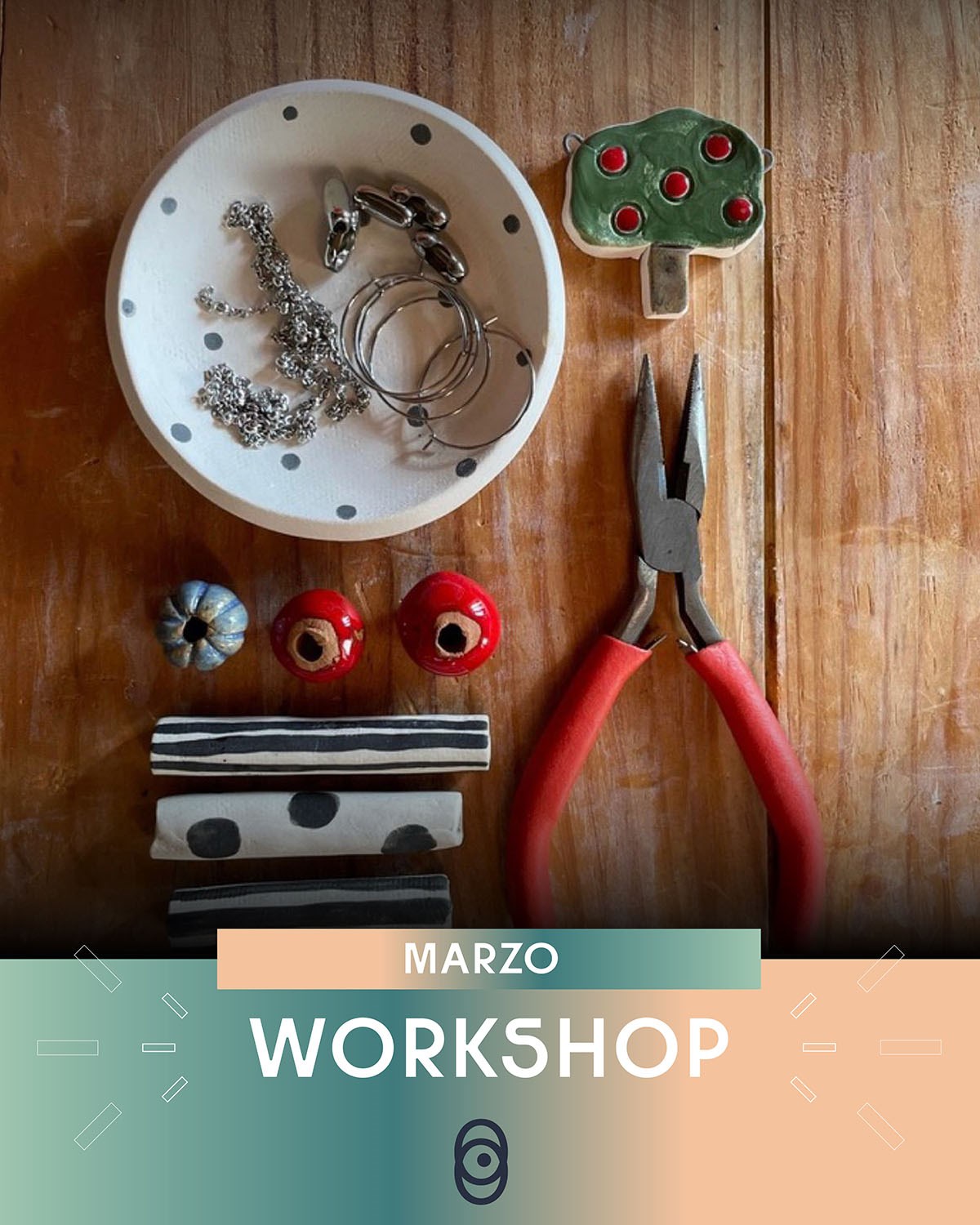 Sabato 7 al mattino sarà possibile partecipare al workshop di Gioielli di Porcellana con Elisa Sasso; i partecipanti creeranno piccoli gioielli unici, giocando con forme, texture, colori e dettagli delicati.