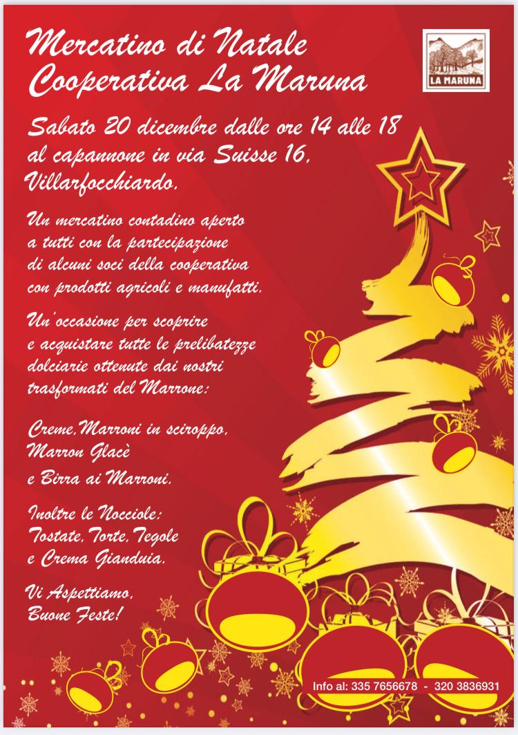 Sabato 20/12 dalle 14.00 alle 18.00 presso la sede della Cooperativa La Maruna - via Suisse 16, Villar Focchiardo - appuntamento con il Mercatino di Natale.