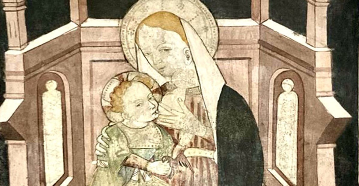 Per scoprire l’origine di questa devozione occorre attraversare l’interno della chiesa, recandosi dietro l’Altare Maggiore: al centro del coro si conserva un pilone votivo, copia di quello posto un tempo nei pressi dell’edificio, con l'immagine della Madonna del Latte dipinta nel 1300 da un ignoto frescante.
