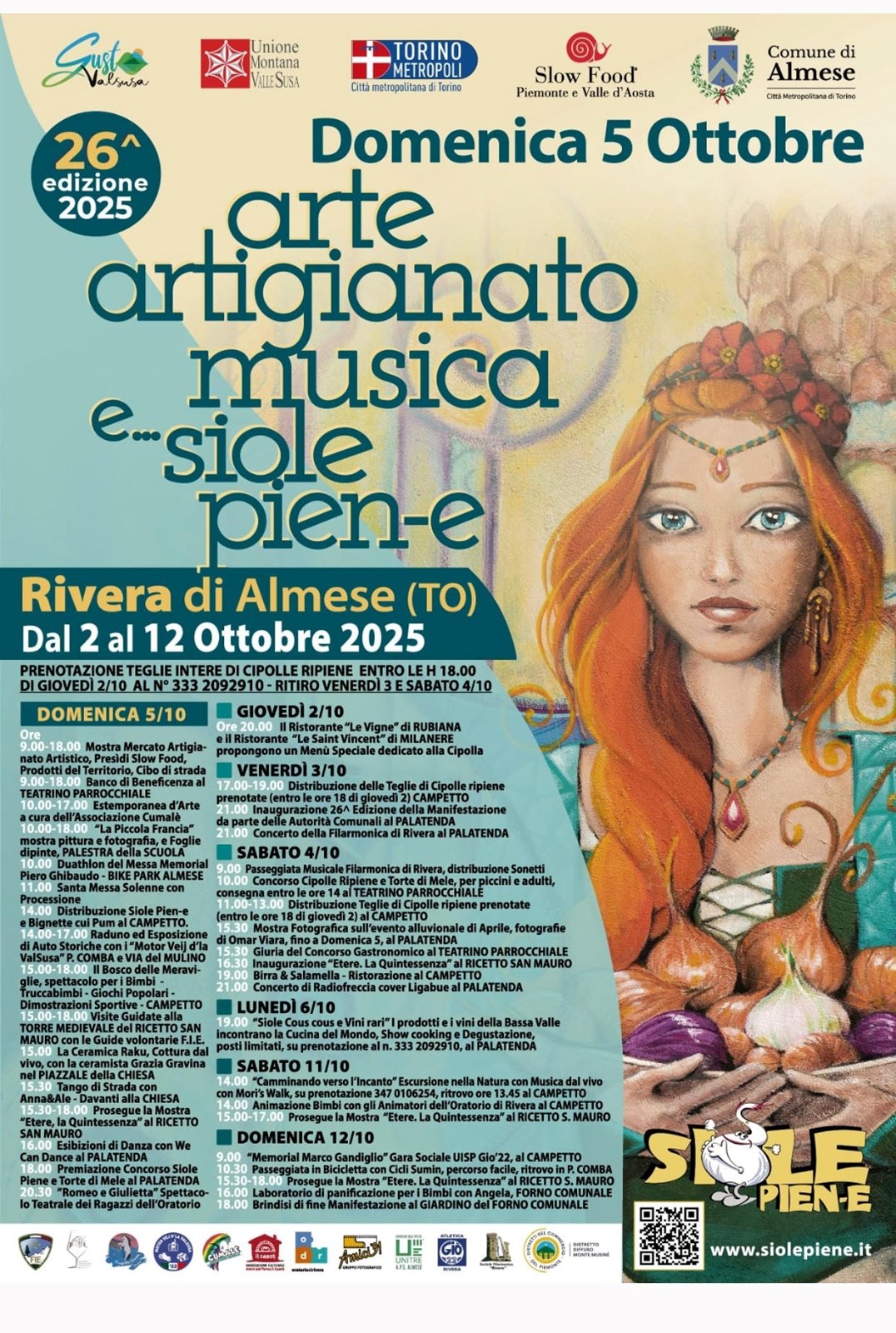 Arte, artigianato, musica, prodotti tipici, un concorso gastronomico e, soprattutto, una ricetta tradizionale e golosa: tutto questo nel primo fine settimana di ottobre a Rivera di Almese in occasione della 26ª edizione della manifestazione dedicata alle Siôle Piene.