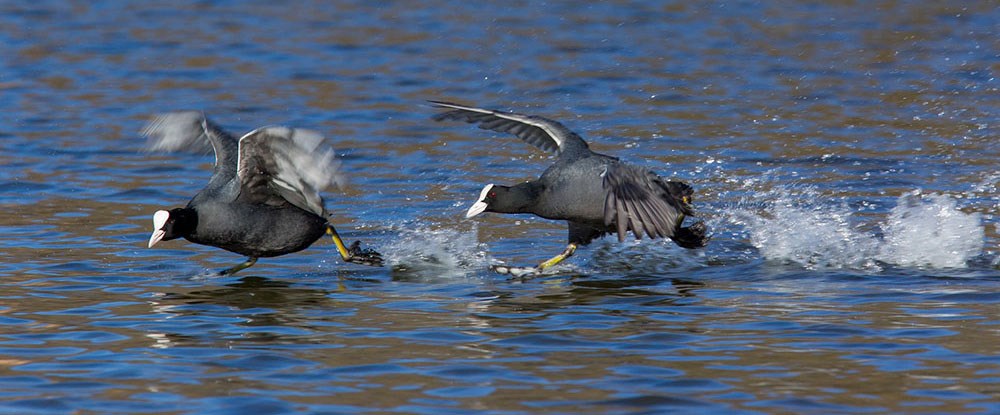 Sbattere d’ali, spruzzi d’acqua, battibecchi rumorosi. Se vi capita di assistere ad una scena del genere ambientata in uno specchio d’acqua dolce non ci sono dubbi, siete davanti ad un gruppo di folaghe (Fulica atra).