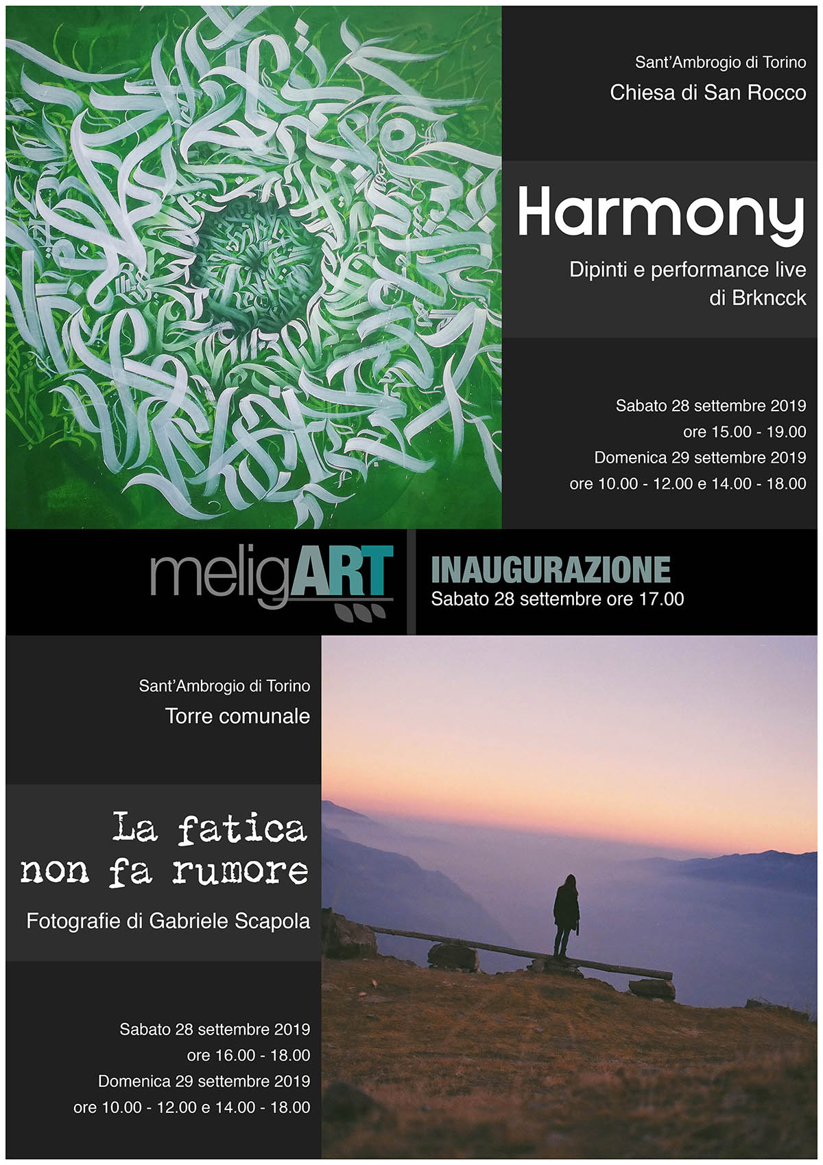 Presso la Chiesa sconsacrata di San Rocco si potrà assistere ad Harmony, un’esposizione di pittura di Matteo Giovazzini, in arte Brkncck, con una sua performance live che durerà entrambe le giornate. Le sue opere sono caratterizzate dall’unione tra differenti stili calligrafici come arabo, gotico e orientale e le moderne tecniche di graffiti art, arricchiti da una componente di improvvisazione creativa che contribuisce a rendere unico il risultato finale.