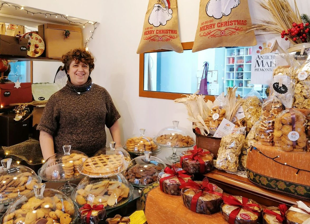 Non che gli sia stato particolarmente difficile trovare il modo per ricompensare bambini ed adulti, perchè in questo periodo, nel negozio condovese, adiacente al laboratorio, tutto parla di dolcezza. Oltre ai consueti canestrelli, classici ed aromatizzati, su scaffali e banchetti è un trionfo di crostate, biscotti e bontà di ogni foggia e forma, che sembrano collocate apposta per attentare alla linea di chi gli passa davanti. Difficile guardarli senza rinunciare all'assaggio ed al successivo acquisto.