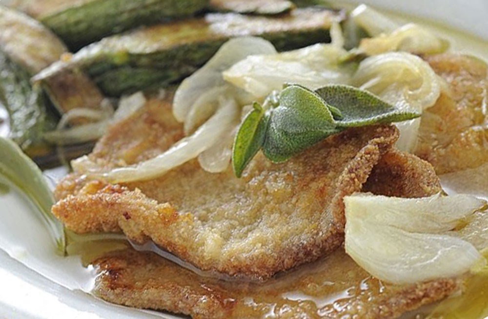 Per preparare la marinatura si procede con un soffritto di cipolle che dovranno arrivare lentamente ad appassire, con l’ausilio di foglie di salvia (molte), poco alloro (rende amaro il cibo) e volendo timo, maggiorana, rosmarino, menta e aglio (personalmente li aggiungo tutti).
