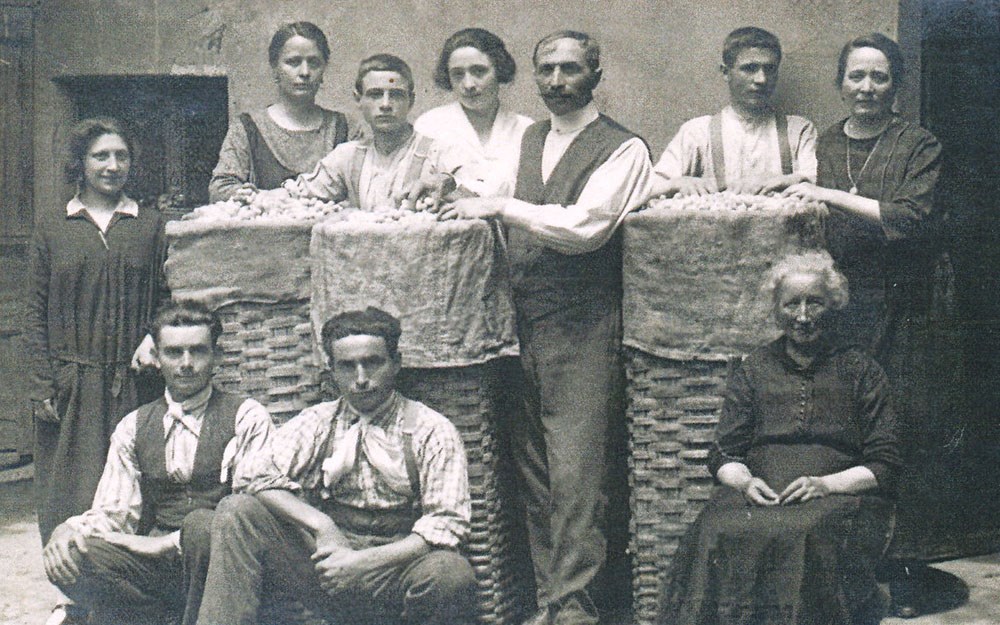 Fino alla metà del '900 anche in Piemonte e nelle nostre valli era presente l'allevamento di bachi da seta, legato indissolubilmente alla coltivazione della pianta del gelso (nella foto bachicoltori a Cavour).