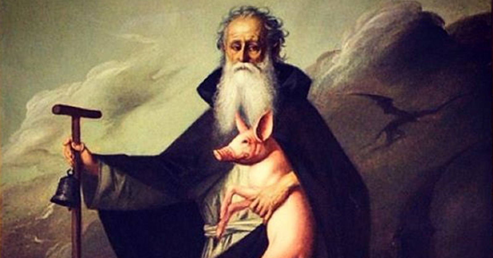 Fu questo il motivo per cui, nella religiosità popolare, Sant'Antonio iniziò ad essere considerato il Santo protettore del maiale e per estensione di tutti gli animali domestici, dei macellai e delle stalle. Spesso veniva ritratto come un anziano monaco dalla barba bianca che con una mano sorregge un maialino e con l'altra impugna un bastone a forma di T ("tau", l'ultima lettera dell'alfabeto ebraico).