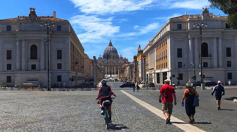 Dieci giorni sono passati così rapidamente, scanditi ogni giorno da uno spettacolo diverso, che non ci hanno nemmeno dato il tempo di abituarci al nostro mezzo di trasporto. Le gambe hanno girato senza problemi, quasi una favola, e l’umore non è mai stato così alle stelle. Una volta passato Castel Sant’Angelo, davanti a noi si sono aperte le porte del Vaticano. Un ultimo scorcio che ci ha lasciato senza fiato per l’emozione, con le lacrime che hanno fatto capolino per l’ennesima volta.