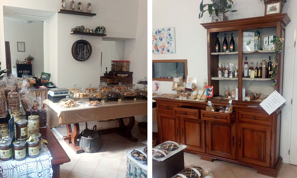 Qui la gamma dei prodotti si è ancora ampliata, ed ora oltre ai Canestrelli (che si possono trovare tradizionali con scorza di limone, al cacao, alla nocciola e all’arancio), comprende Crostate fatte con marmellate di piccoli frutti o ramasin (tutte bio e prodotte ad Almese), Fiori alla marmellata, Biscotti di mais con miele di castagno, Condovelli (biscotti senza lattosio), Frollini alla lavanda, alla cannella, allo zenzero, al cacao e arancio, al genepy (tutti senza lievito), Malfatti di Paolo (biscotti morbidi integrali con uvetta), Paste di meliga fatte con antiche varietà di mais piemontesi e senza uova, Pan ed melia (un dolce di mais tradizionale con uvetta e finocchietto selvatico), Torte di nocciola... In più nel negozio si possono trovare Cialde di mais (di pignoletto rosso), Menta di Pancalieri, Miele della Valle, Marmellate ....