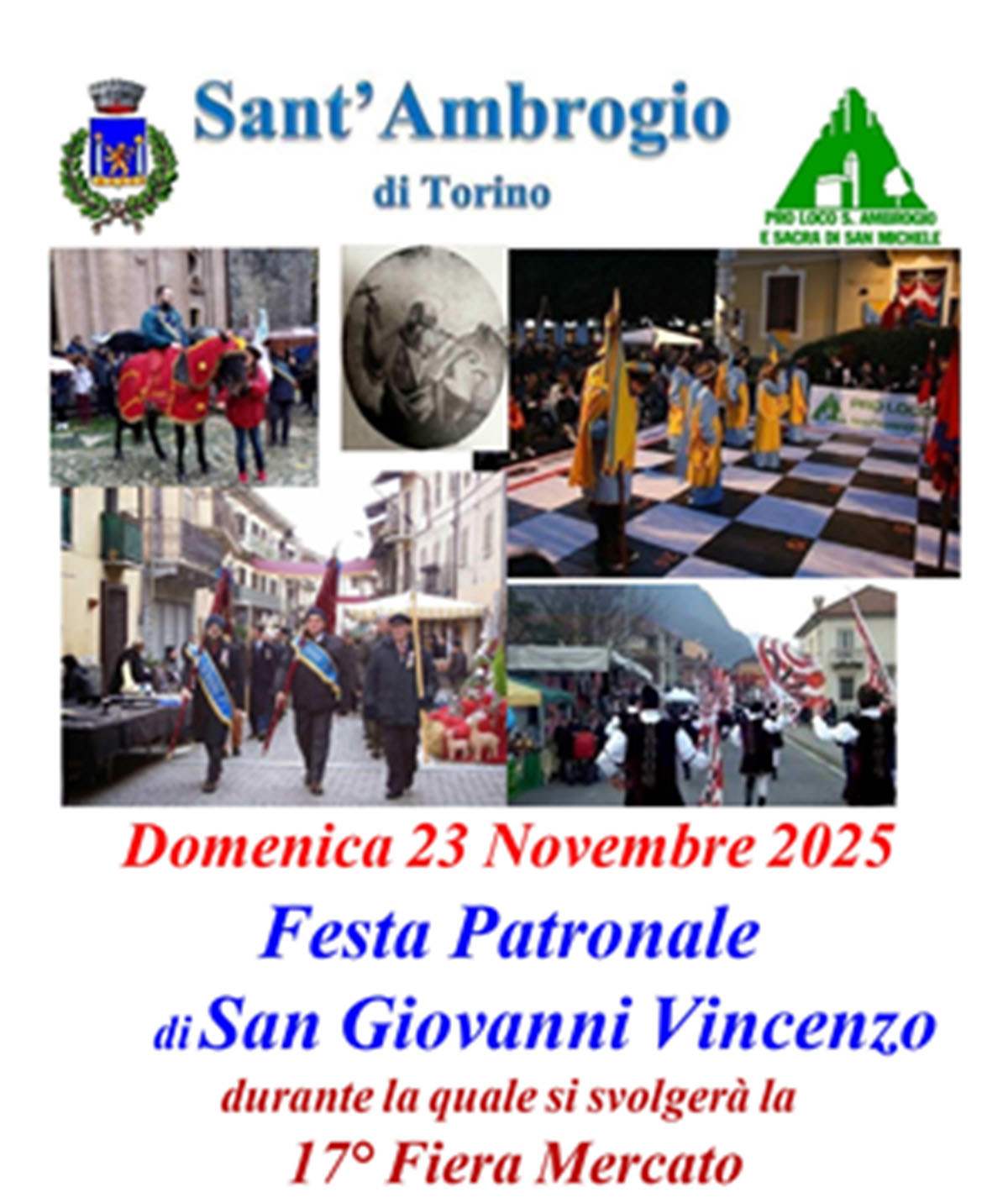 La festa patronale in onore di San Giovanni Vincenzo si celebra ogni anno a Sant'Ambrogio la domenica più prossima al 21 novembre (nel 2025 sarà domenica 23) e coinvolge intere famiglie nella preparazione dei piatti tipici, tra cui spiccano rape, cipolle ripiene e paste di meliga.