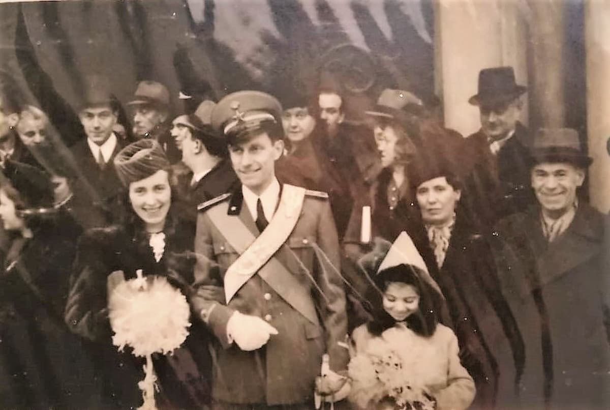 La foto del matrimonio di mia nonna Maria e mio nonno Mario che ritrae a destra Carlo Tessa sorridente .