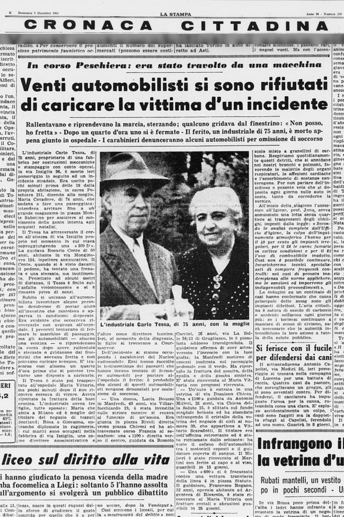 Il ritaglio de “La Stampa” del 9 dicembre 1962, dall’archivio storico del quotidiano.