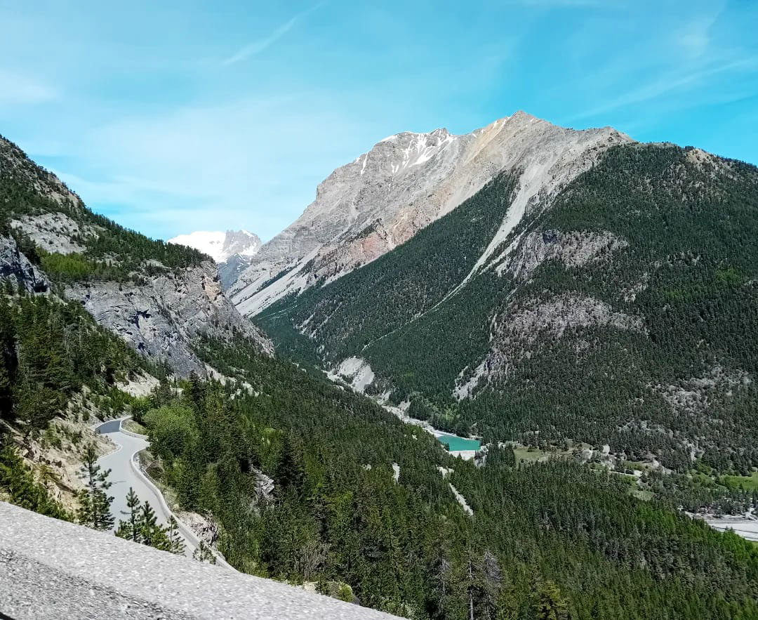 Salendo al colle della Scala. Veduta sulla valle Stretta; in fondo il Thabor e a destra i Re Magi (tre cime distinte che qui sembrano una sola)
