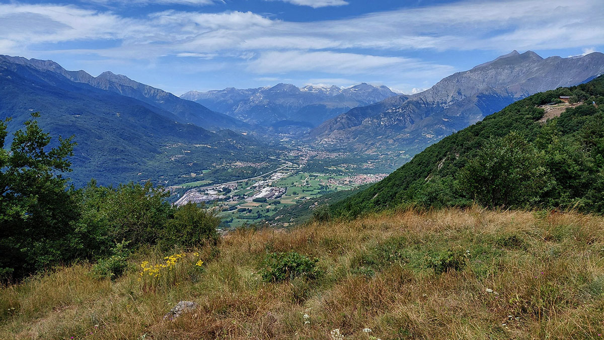 Panoramica sulla Valle di Susa: Bussoleno, Chianocco, Bruzolo e, sullo sfondo a destra, la Sacra di San Michele