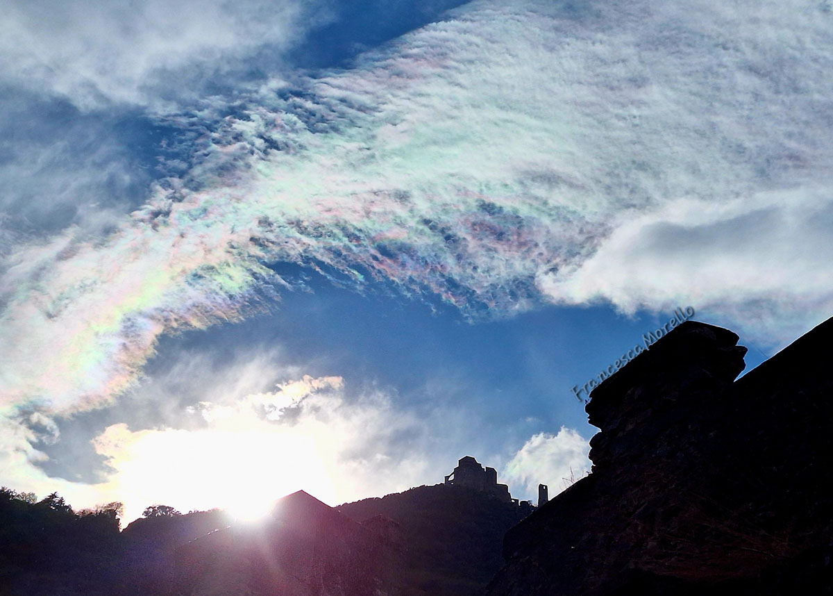 Nube iridescente ammanta la Sacra di San Michele (Dal borgo di Sant'Ambrogio)