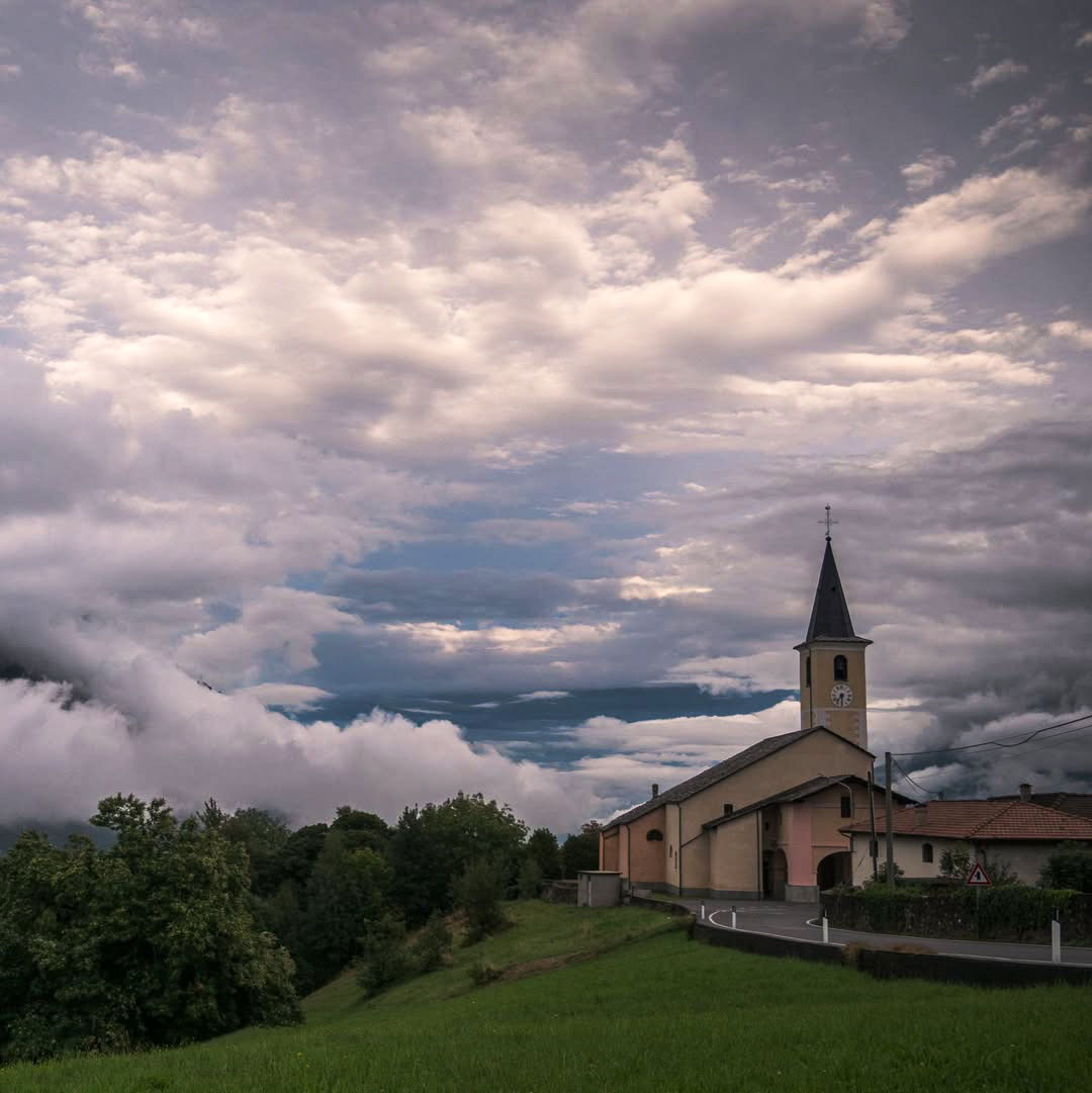 La chiesa di Giaglione incorniciata in un pomeriggio settembrino