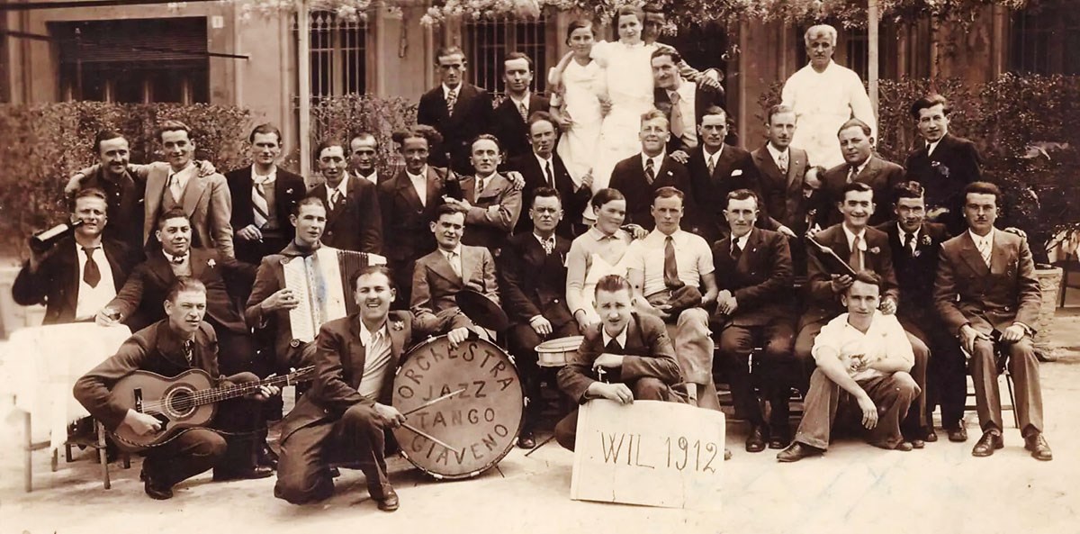 I coscritti di Coazze del 1904 in una foto degli Anni Venti, fornita da Maria “Nini” Piola per il libro Coazze…come eravamo.
