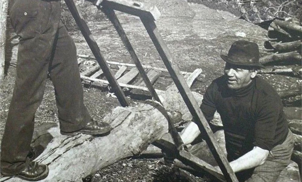 Fin verso gli anni 50, quando la montagna era ancora popolata, non era raro, specialmente alla domenica, incontrare nei boschi o nei pressi delle borgate gruppetti di uomini intenti a segare grossi tronchi per ricavarne assi necessarie per i lavori di falegnameria o per costruire balconi e solai.