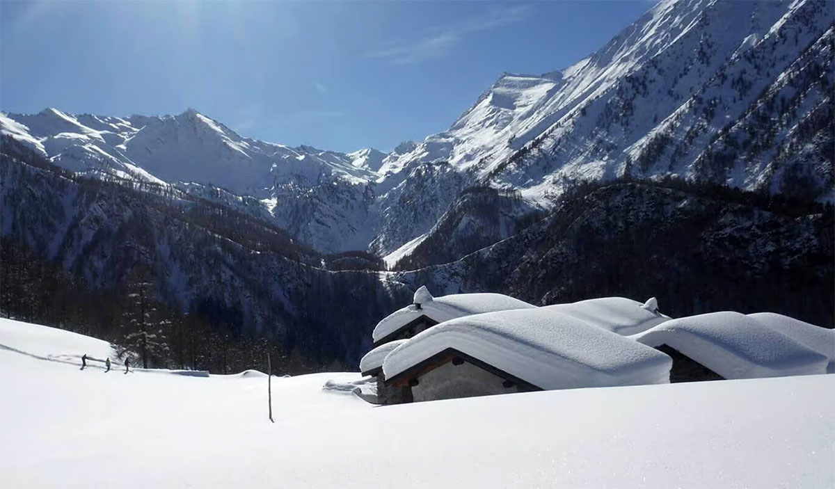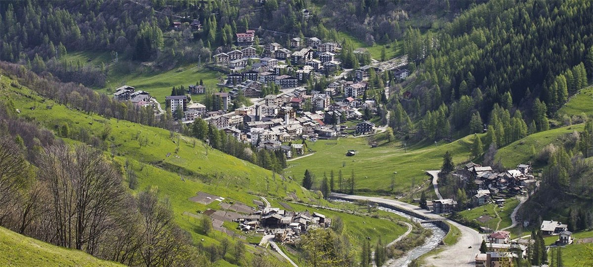 Le montagne circostanti raggiungono quote oltre i 3.000 metri e creano un paesaggio di grande impatto visivo che ha favorito attività legate al turismo, un processo iniziato negli anni ’50 e ’60 con le prime infrastrutture sciistiche e di accoglienza.